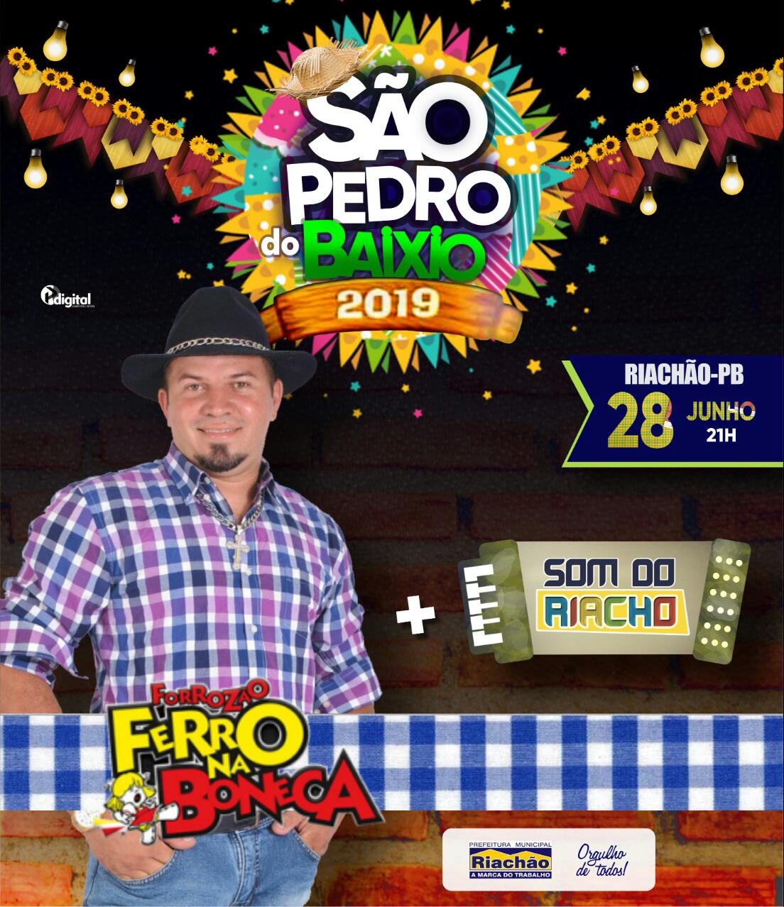 A Prefeitura Municipal de Riachão convida a todos para o tradicional São Pedro do Sítio Baixio. A festividade contará com as bandas Ferro na Boneca e Som do Riacho, e terá início às 21 horas.